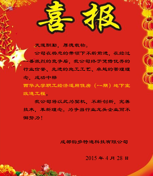 喜报 我公司成功中标西华大学职工经济适用住房(一期)地下室改造工程