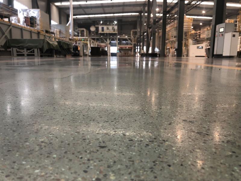 让我们看一下,使用两年后的地面:经过两年的使用,重型叉车、大型货车等车辆碾压,地面依旧光亮如新!